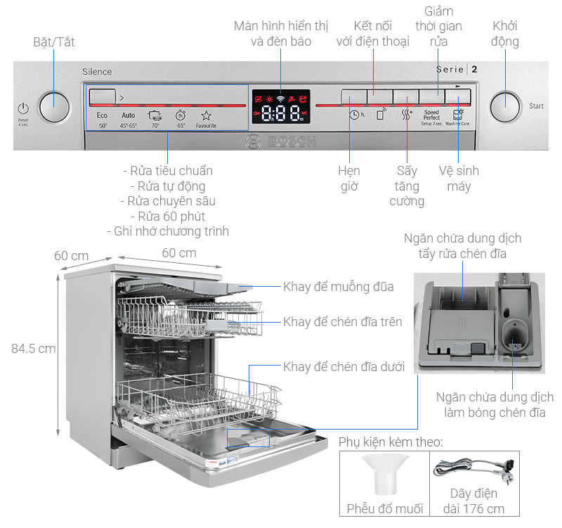 Nhằm mang lại trải nghiệm tối ưu nhất cho người dùng, máy rửa bát 13 bộ SMS2IVI61E của Bosch còn được tích hợp nhiều tiện ích như: