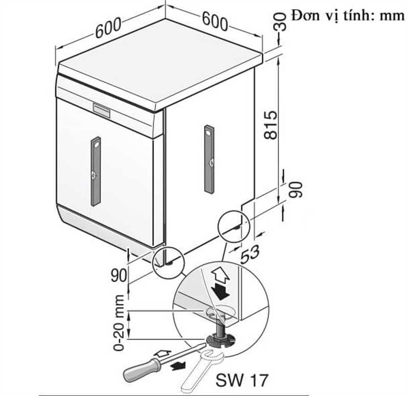 Máy có khả năng rửa tối đa 13 bộ đồ ăn châu Âu/lần phù hợp với hầu hết mọi gia đình Việt. Thiết bị được nhập khẩu nguyên chiếc từ châu Âu đảm bảo các tiêu chuẩn cao về độ ồn và tiết kiệm điện năng.