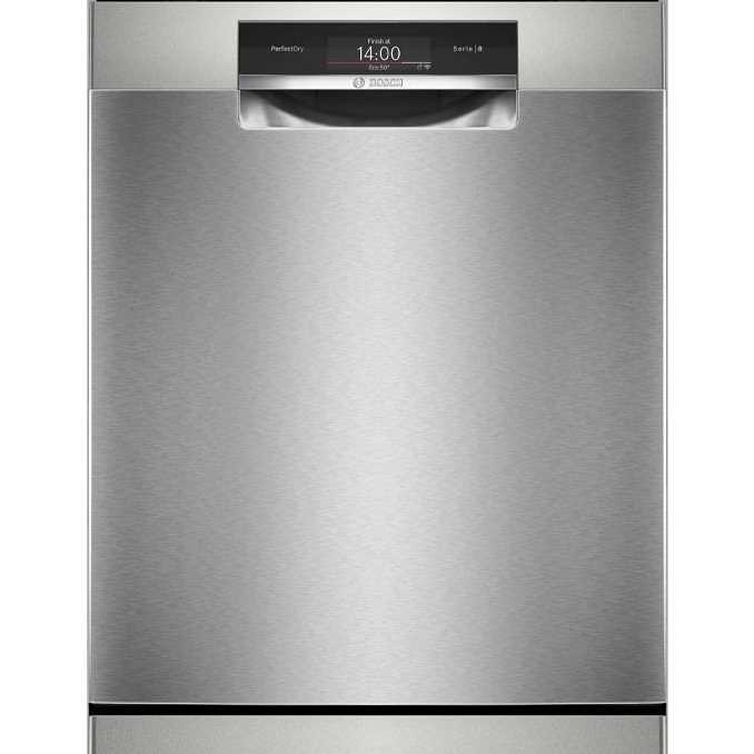 Bosch SMS8ZDI86M có thiết kế độc lập với lớp vỏ inox bạc chống bám vân tay, tạo cảm giác sang trọng và sạch sẽ cho không gian bếp.