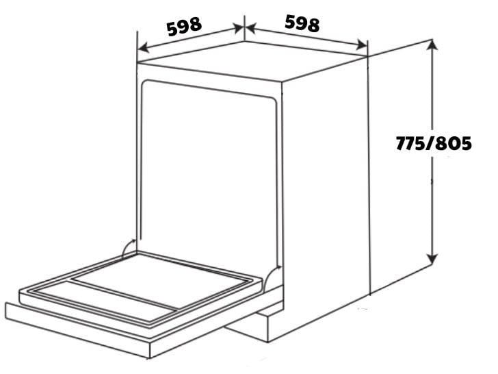 775–805 x 598 x 598 mm (Cao x Rộng x Sâu)