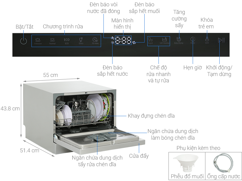 • Chức năng sấy tăng cường hỗ trợ làm khô bát đĩa nhanh chóng