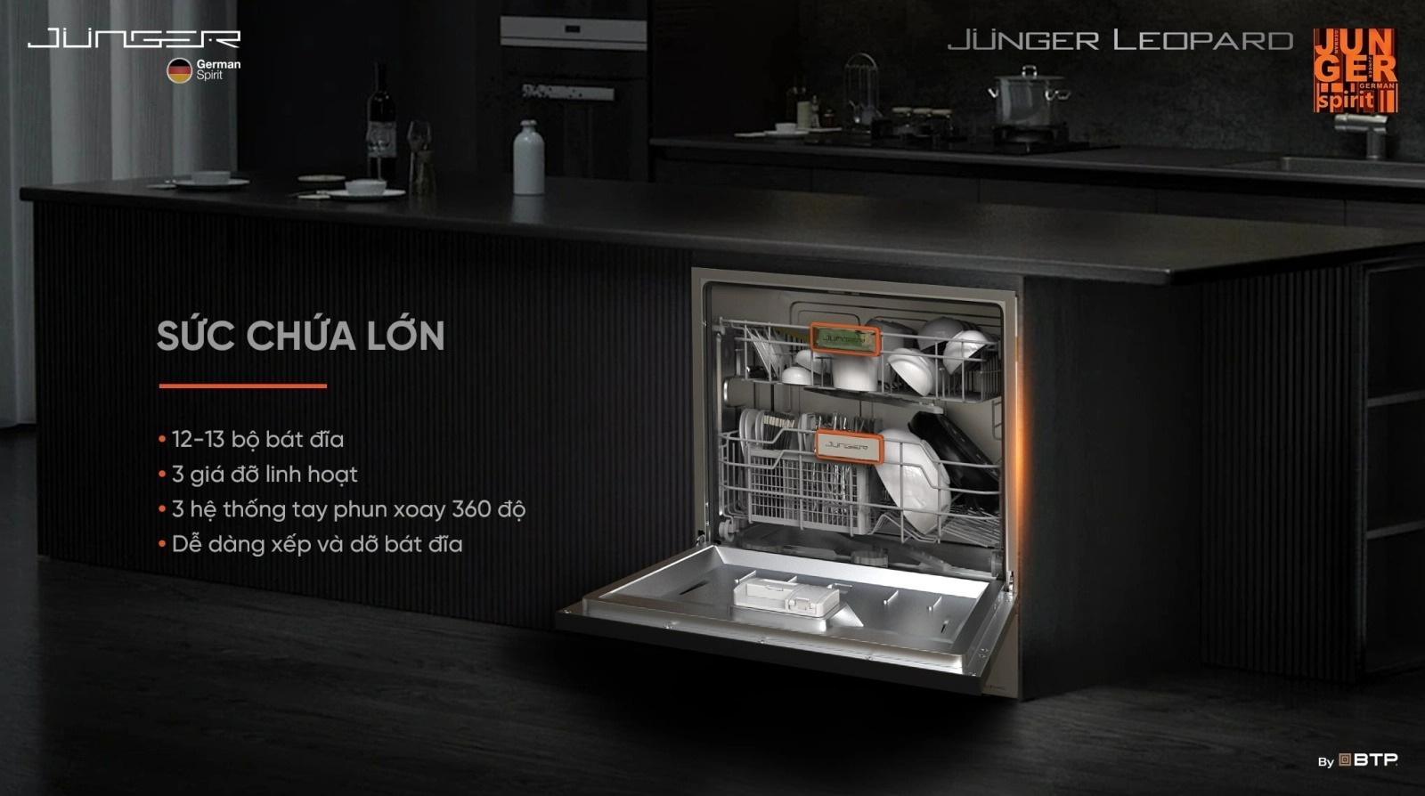 Junger Ag+ Protection: Tích hợp hệ thống khử khuẩn nước bằng ion Bạc, tiêu diệt vi khuẩn và virus ngay từ giai đoạn làm sạch, đảm bảo nước rửa luôn tinh khiết, bảo vệ sức khỏe