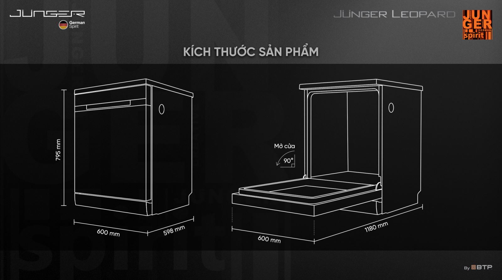Rửa khử khuẩn Junger UV Virus Killer: Sử dụng nước nóng 75℃, kết hợp tia UV và khử mùi bằng gió nóng đối lưu Fresh Air tiệt trùng hiệu quả 99,99% vi khuẩn cho bát đĩa và vật dụng rất bẩn.