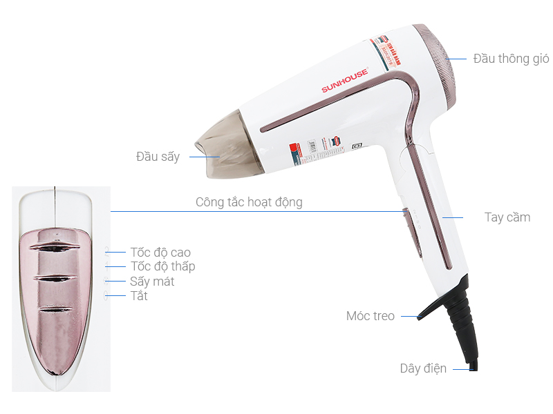Máy sấy tóc 1500W Sunhouse SHD2308W