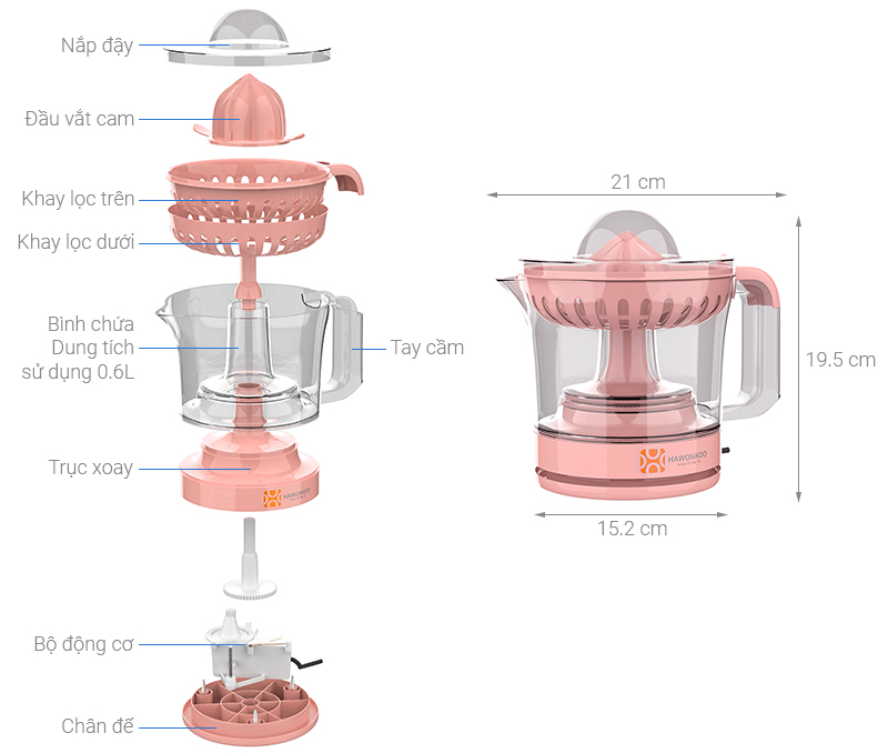 Máy Vắt Cam Hawonkoo 30W OJH-001-PK Tiện Lợi Giá Tốt 490.000₫690.000₫-29%