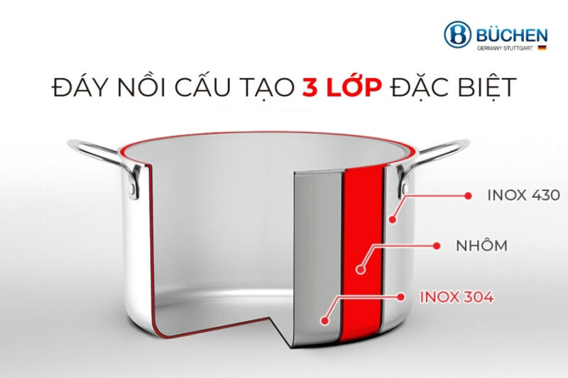 Cấu tạo đáy nồi 3 lớp: