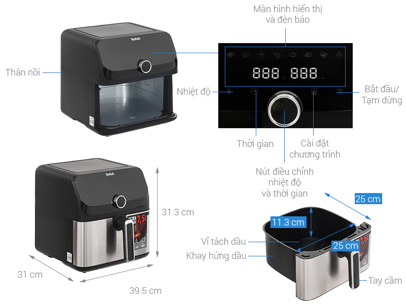 Nồi chiên không dầu Tefal 7.5 lít EY855D68