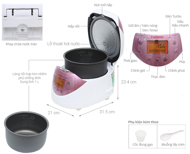 Tiện ích Hẹn giờ nấu xong; Giữ ấm 12 giờ; Điều chỉnh thời gian nấu