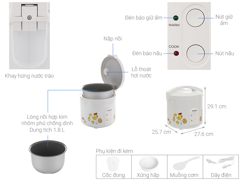 Nồi cơm nắp gài Sharp 1.8 lít KS-183TJV-CH
