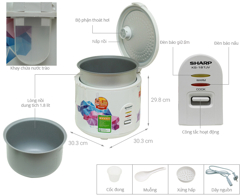 Nồi cơm nắp gài Sharp 1.8 lít KS-18TJV