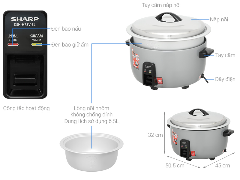 Nồi cơm nắp rời Sharp 6.5 lít KSH-H65V-SL