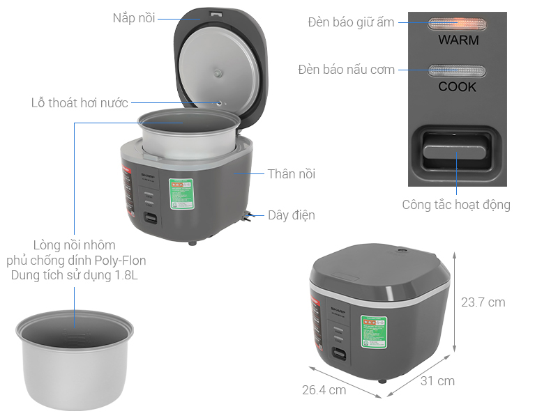 Nồi cơm nắp gài Sharp 1.8 lít KS-PR19ETV-GR