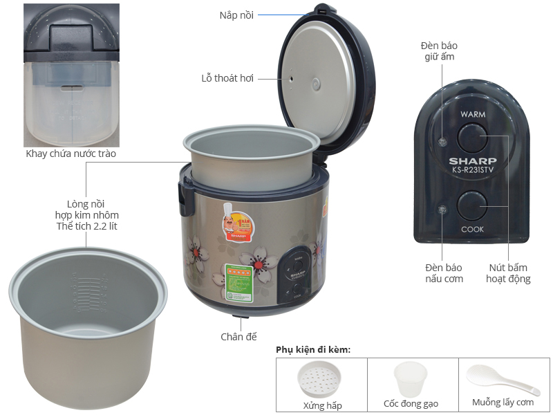 Nồi cơm nắp gài Sharp 2.2 lít KS-R231STV