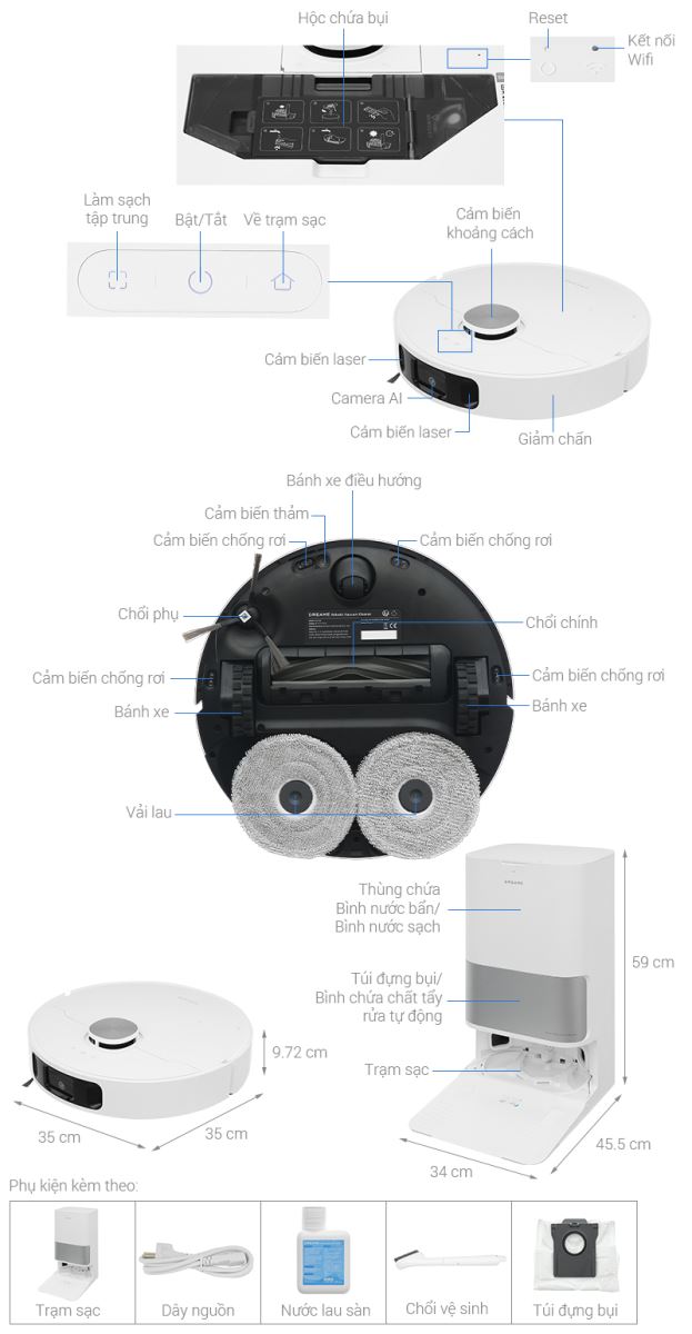 Tự động đổ bụi, giặt, sấy khô vải lau