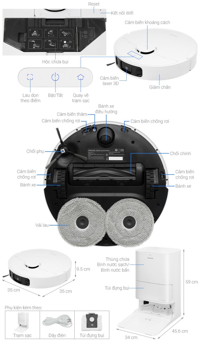Tự động đổ bụi, giặt, sấy khô vải lau