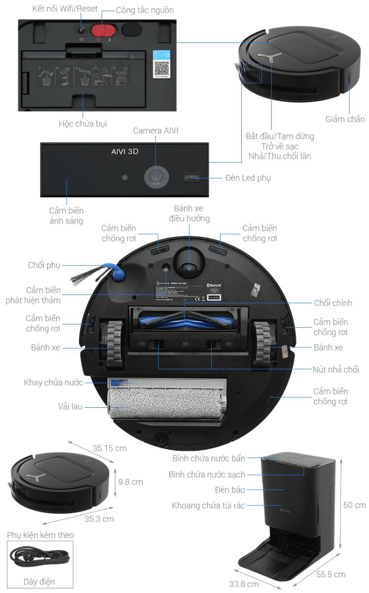 Tự động đổ bụi, giặt, sấy khô vải lau