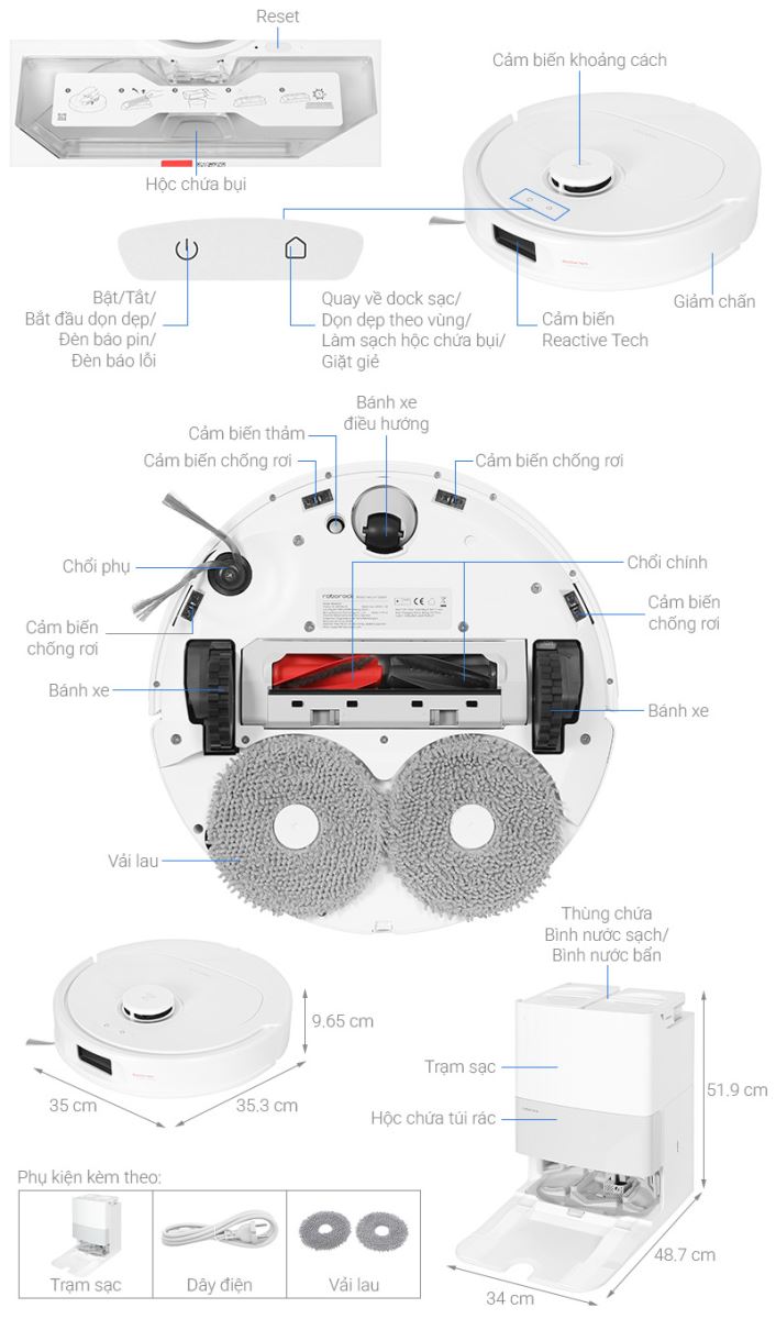 Ngang 35 cm – Cao 9.65 cm – Sâu 35.3 cm – Nặng 11.7 ± 0.3 kg (đã bao gồm trạm sạc)