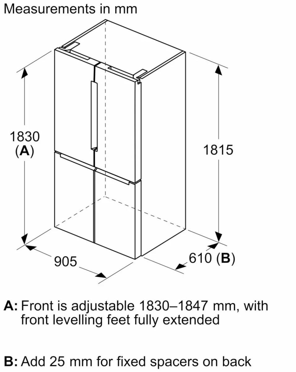 Bosch KFN96AXEA sở hữu thiết kế tủ lạnh nhiều cánh (4 cửa) với màu đen thép không gỉ thời thượng, chống bám vân tay, giúp tủ luôn giữ được vẻ sáng bóng.