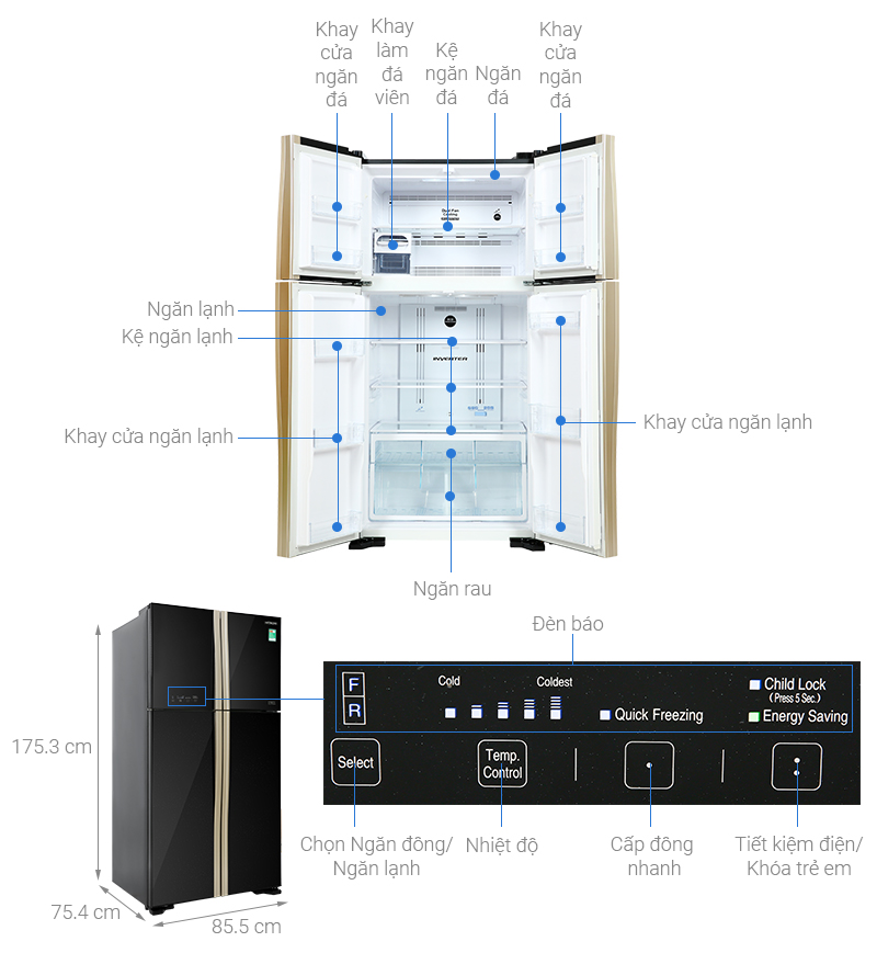 Tủ lạnh Hitachi Inverter 509 lít Multi Door R-FW650PGV8 GBK