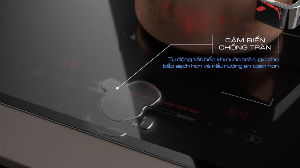 Cảm biến chống tràn là một hệ thống phát hiện chất lỏng trên mặt bếp, đặc biệt là khu vực bảng điều khiển cảm ứng.