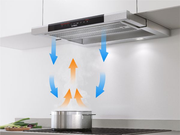 Khi kích hoạt HoodControl trên bếp từ, bếp từ và máy hút mùi sẽ hoạt động như một hệ thống đồng bộ. Chỉ cần bật bếp từ, máy hút mùi sẽ tự động khởi động và điều chỉnh tốc độ hút tương ứng với mức công suất nấu. Nhờ đó, khói, mùi và hơi nước trong quá trình sử dụng bếp từ được xử lý gần như ngay lập tức.