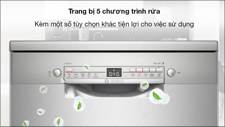 Máy rửa chén Bosch có sấy cho hiệu quả tiết kiệm điện nước nhờ được trang bị chế độ rửa ECO. Bên cạnh đó, chế độ hẹn giờ còn cho phép người dùng kiểm soát thời gian sử dụng máy tốt hơn.