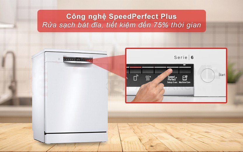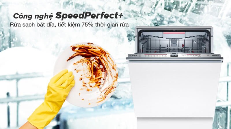 SpeedPerfect+ xuất hiện như một lời hứa “phá vỡ quy luật đó”: rút ngắn thời gian rửa tới 50–66%, nhưng vẫn đảm bảo bát đĩa sạch.