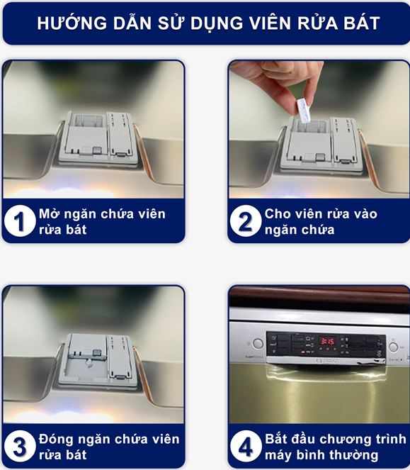 • Pre-Soaking Action: Chức năng ngâm, hỗ trợ người dùng không còn cần phải tráng bát đĩa trước khi đưa vào máy.