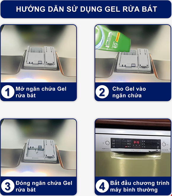 Pre-Soaking Action: Chức năng ngâm, nếu trước đây bạn công đoạn tráng bát đĩa trước khi cho vào máy tốn nhiều thời gian, công sức thì với viên rửa chén bạn hoàn toàn loại bỏ được bước này.