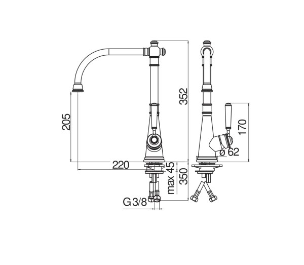 • Chiều cao 245 mm: phù hợp với nhiều lắp đặt chậu bếp thông thường, thân vòi gọn gàng và tiện nghi.