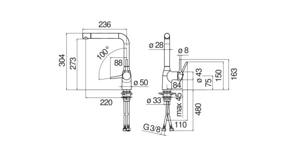 • Thiết kế cần cứng chắc, thân vòi kiểu cổ cao, phù hợp với chậu rửa bát kích thước lớn.