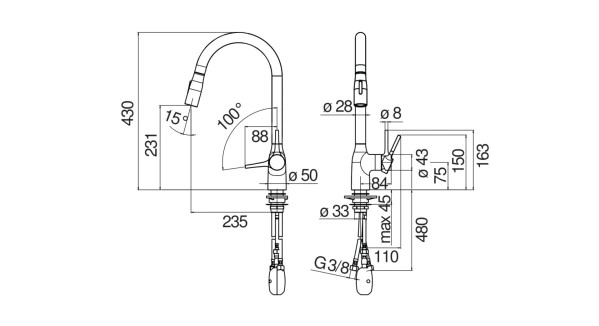 Dòng / Bộ sưu tập MANIA — vòi rửa bát dây rút nóng/lạnh.