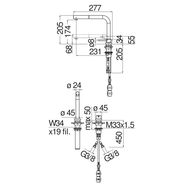 Dòng sản phẩm TABLE – Vòi rửa bát dây rút nóng/lạnh